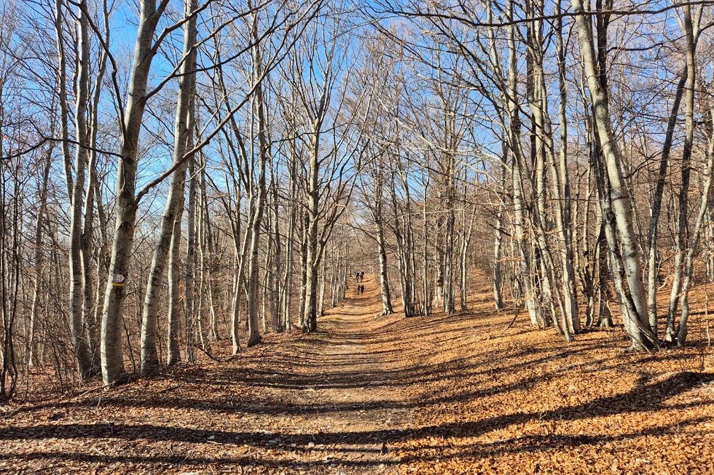 A l’embranchement prendre à droite une piste forestière .