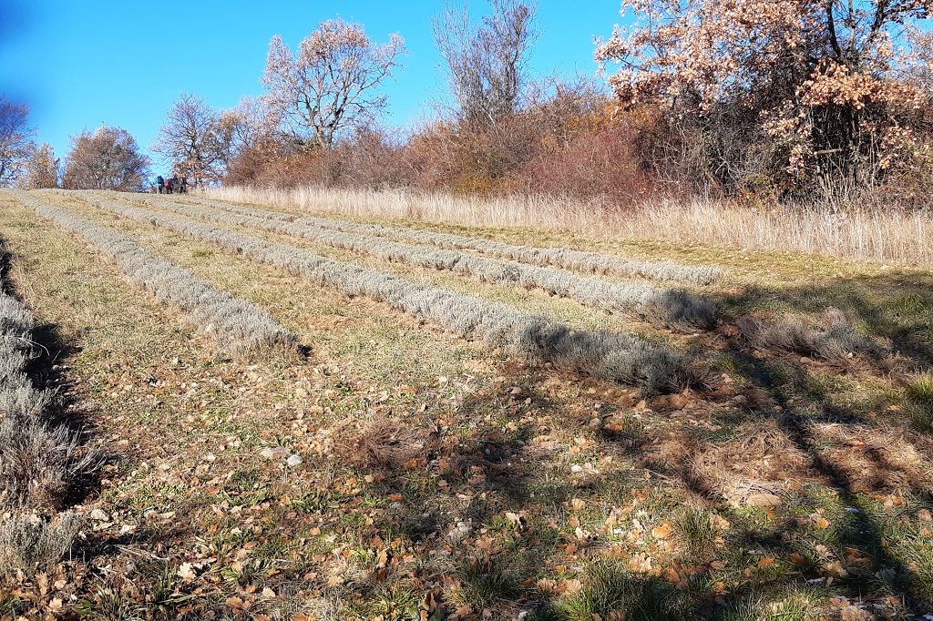 Après la traversée d’un torrent, passer sous la bergerie et quitter le GR pour prendre à droite (en épingle) le sentier qui longe les champs de thym puis entre dans la forêt, passe au dessus d’un petit lac et rejoint un sentier venant de Lardier.