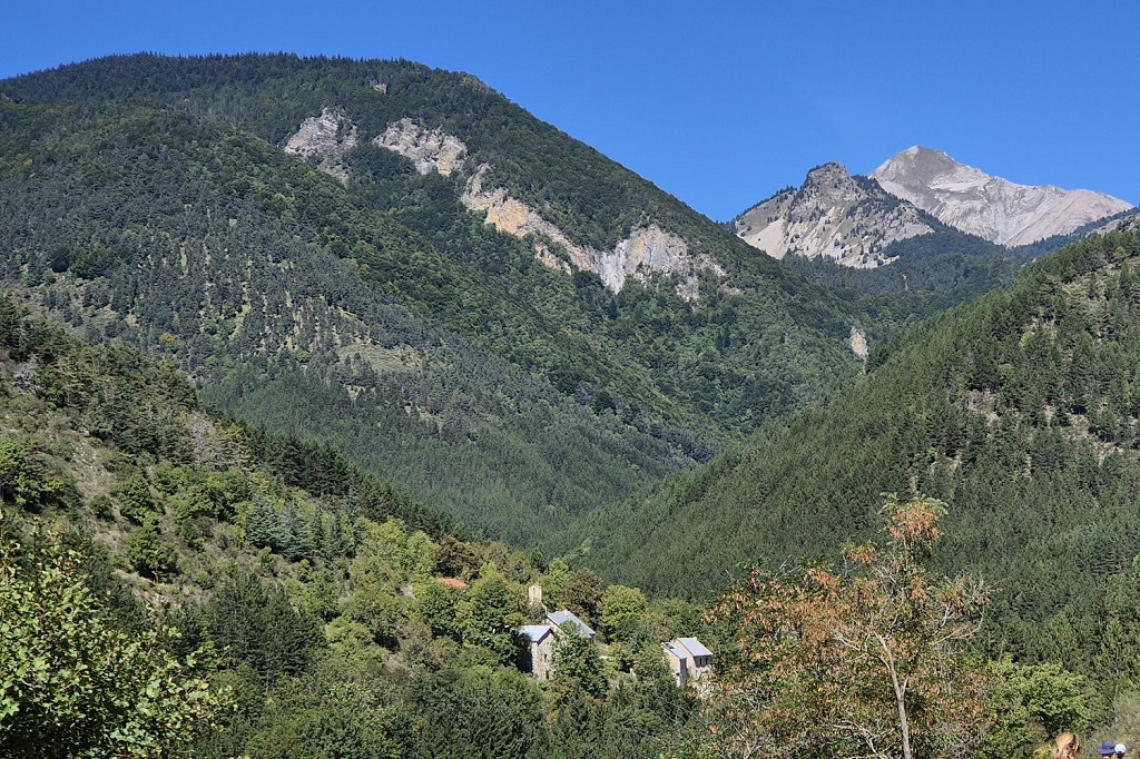 Démarrer sur la piste forestière puis la quitter pour emprunter le sentier qui monte à gauche dans la forêt domaniale de Durbon. Il coupe le piste un peu plus loin et continue en balcon, au-dessus du ravin de Berthaud (attention : quelques passages étroits et caillouteux et un peu exposés par endroits).