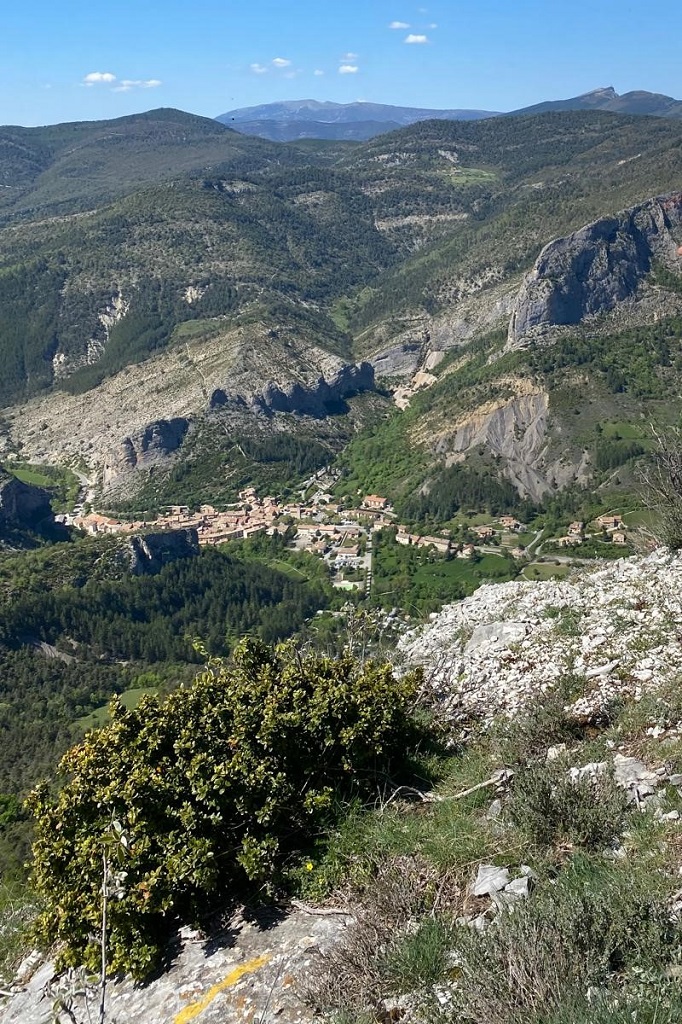 Revenir à la table d’orientation et suivre « Orpierre » – 3.2 km en empruntant un sentier très abrupt.