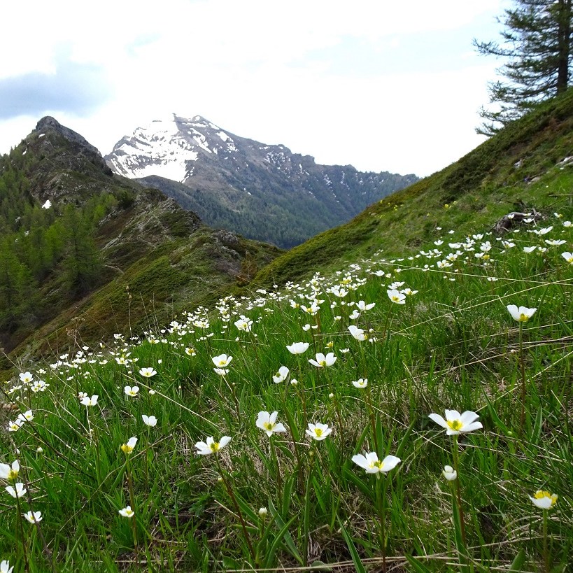 Alors que le début de la rando en forêt est très agréable la montée finale jusqu’au col est plutôt éprouvante mais quel panorama là-haut : le vieux Chaillol, La Vénasque, Le Queyrel, les sommets du Dévoluy … et en contre bas toute la vallée vers St Bonnet et le bocage du Champsaur. Et puis que de fleurs : boutons d’or et myosotis le long du sentier, pensées violettes, coucous, géranium, et plus haut anémones à peine fleuries. La température est agréable, il ne fait pas encore trop chaud mais à la descente on a bien cru que la pluie et même peut-être le tonnerre allaient s’inviter : il a fallu sortir les capes de pluie mais cela n’a pas duré et nous avons même pu faire à la descente 2 petites haltes, ce qui à permis à certains, au niveau des maisons de Subeyrannes, de se faire une belle provision d’épinards sauvages pour un bon plat d’oreilles d’ânes ce soir. Encore une belle rando bien fleurie.