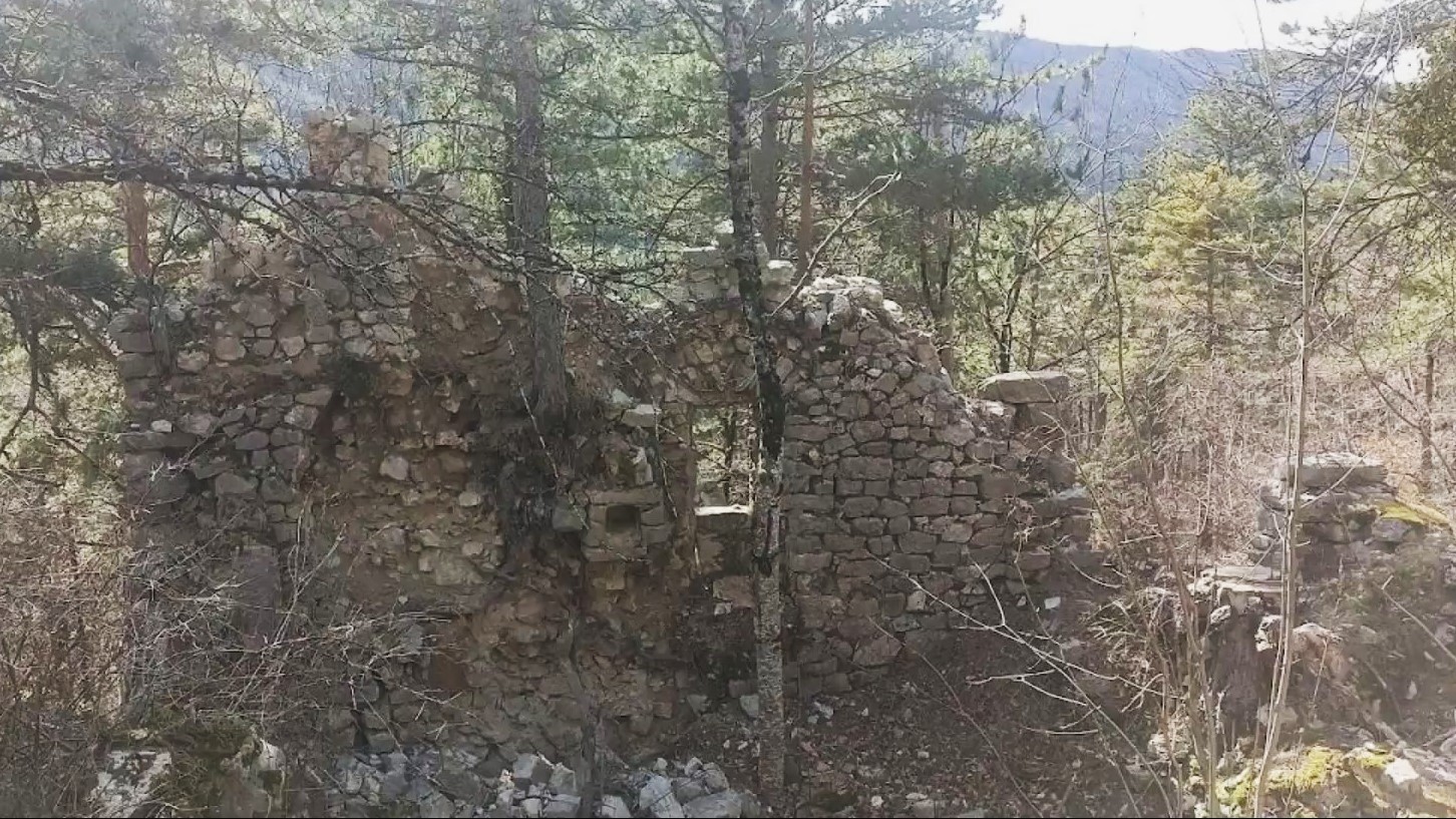 Sur un plan du village d’après le cadastre de 1835, on peut voir l’emplacement de ces maisons avec le nom de chaque propriétaire. Le village a été abandonné en 1904 lorsque l’état français décida le reboisement de la montagne de Saint-Genis. La végétation a envahi les ruines. Il ne reste plus que quelques murs en pierres taillées. De retour au parking, nous avons pris le temps de lire les panneaux sur l’origine de la forêt domaniale de Beynon (issue de la Restauration des Terrains en montagne) et sur la réserve biologique de Revuaire qui abrite, paraît-il, une des plus belles thuriféraies de France.