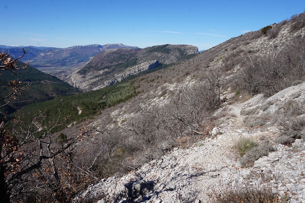 Prendre la piste à gauche (GRP Tour du Buëch) pendant 1 km jusqu’au Pas de Jubéo (952 m).