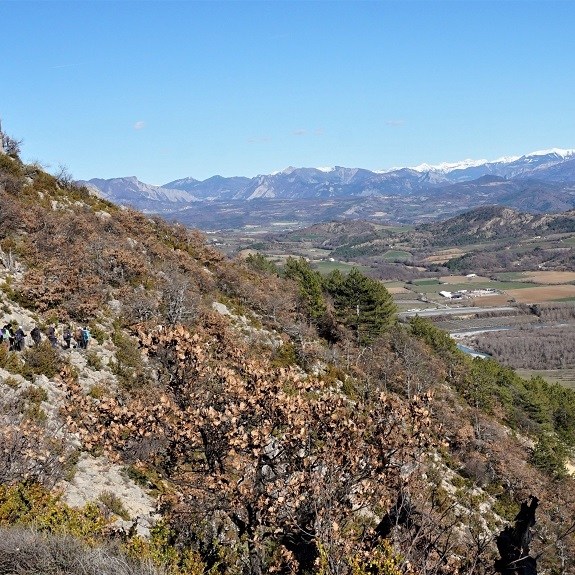 Un itinéraire qui aborde la montagne de Chabre à son extrémité ouest et longe la crête jusqu’à la table d’orientation où le panorama est à 360°. Vergers, forêt, garrigue se succèdent. On côtoie les ruines d’un ancien hameau et les zones de décollage de parapentes et deltaplanes.