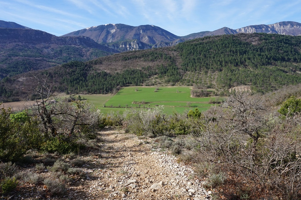 Ce sentier étroit et bien escarpé rejoint la route qui nous ramène au village de Saint-Vincent sur Jabron.
