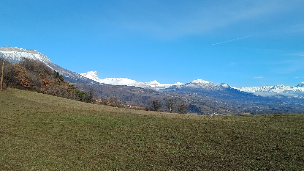 Belle boucle qui démarre de La Saulce par le sentier bien aménagé jusqu’aux ruines de Saulce-Vieille puis remonte vers le nord avec une jolie vue sur la vallée de la Durance et les sommets enneigés du Dévoluy et du Champsaur. Le temps est très ensoleillé et la température, douce pour la saison. Il faut bien suivre le tracé jaune et rouge au niveau des fermes pour ne pas traverser des propriétés privées. Nous nous sommes arrêtés pour pique-niquer sur le plateau du bois de la Pinée. Fidèle à la tradition, Monique nous a offert galettes et brioches des rois, apportées par Edgar. Marcel, Rolande et Jacqueline, sont venus nous rejoindre en voiture et nous avons trinqué tous ensemble dans la joie et la bonne humeur. Pour bien achever cette journée, nous sommes remontés jusqu’au col en direction de la Sainte-Croix avant de redescendre par des sentiers bien entretenus par Monique et Edgar.