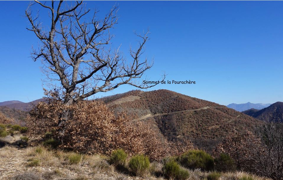 De là continuer sur 900 m pour atteindre le sommet de la Pourachère (861 m).