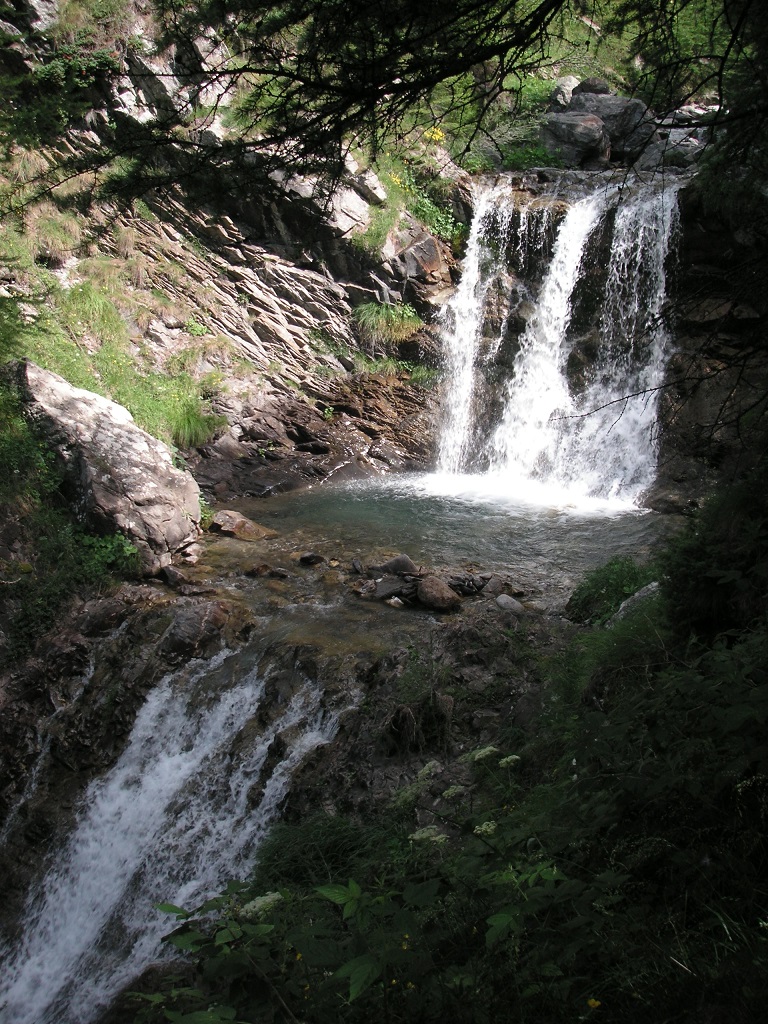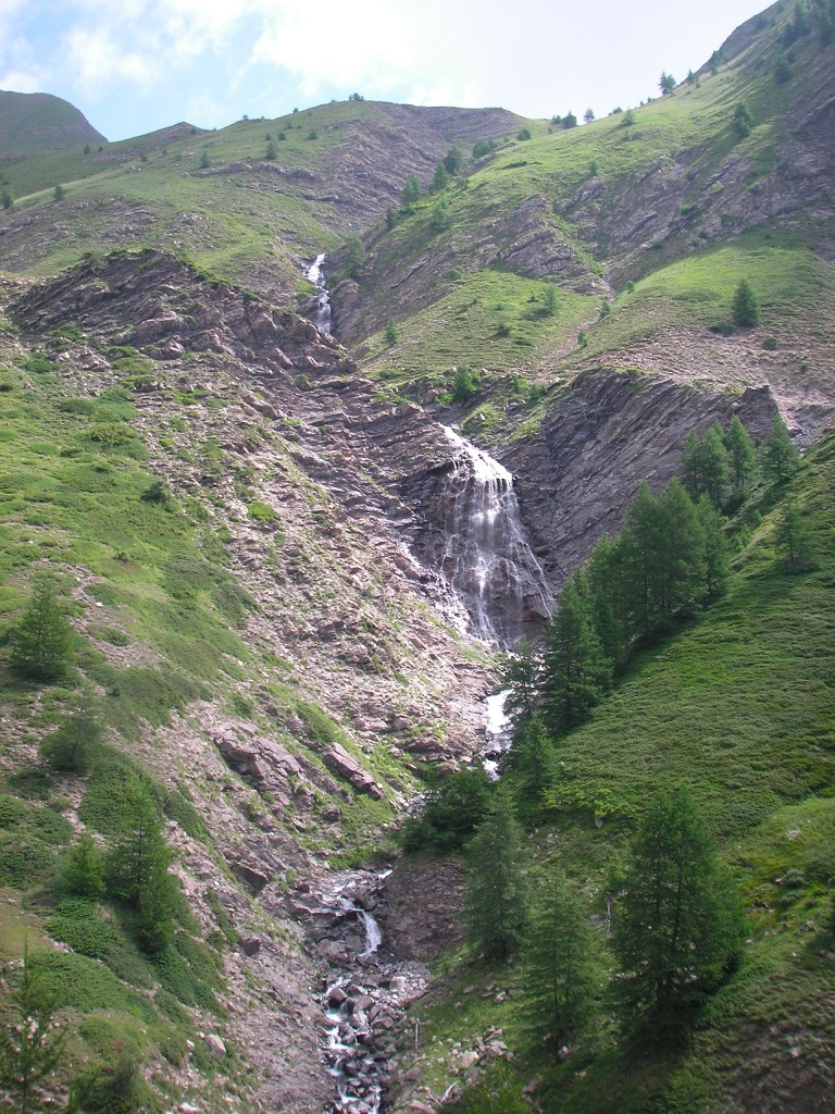 Le sentier longe un moment le torrent avec de magnifiques cascades, traverse le vallon et arrive sur un petit replat « Vallon de la Baume » (2025 m).