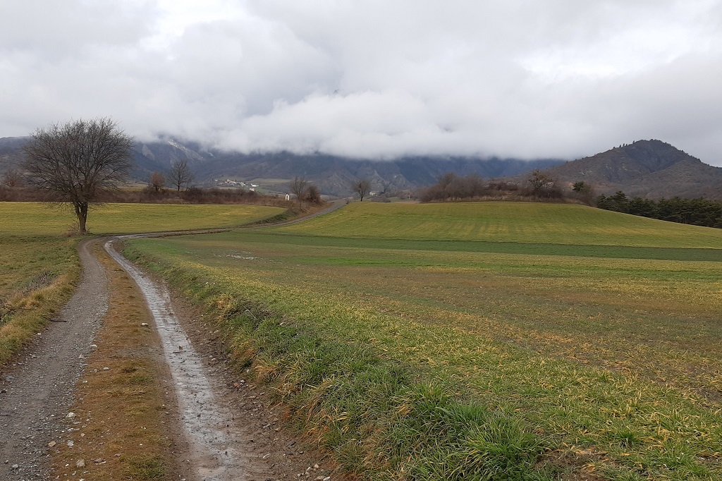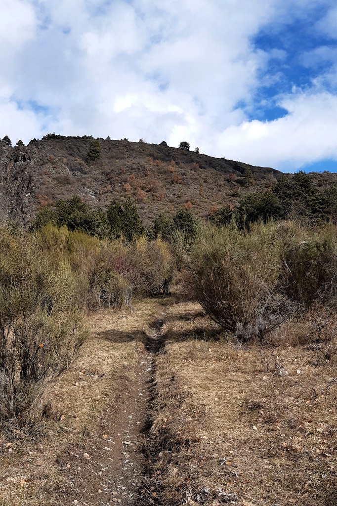 Remonter la route et prendre, juste avant le pont, le chemin à droite puis, tout de suite à gauche : il longe d’abord le torrent puis part vers l’est, plus ou moins à flanc, en contournant la colline de Chauvet.