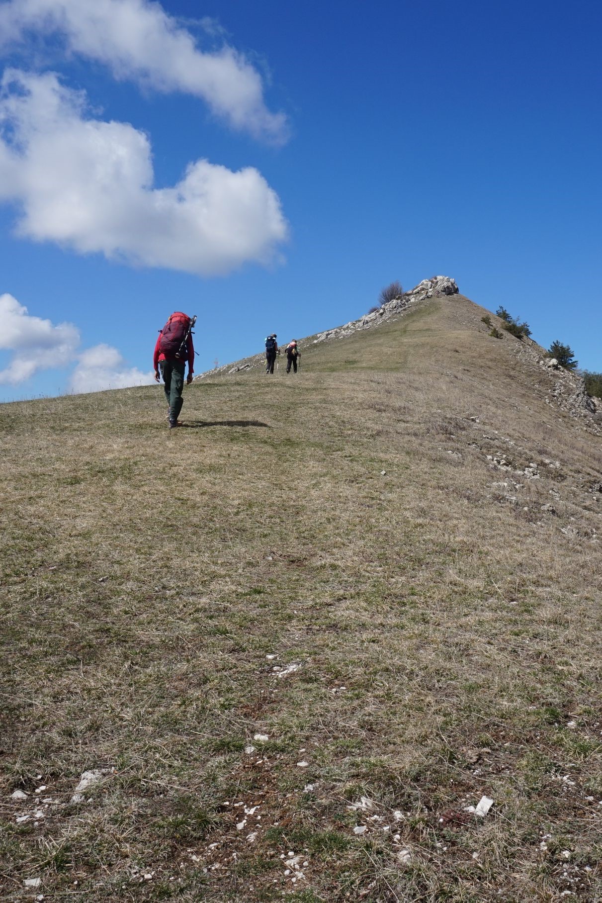 Très jolie randonnée variée entre pâturages, forêts et sommet très dégagé. Nous étions 17 au départ avec Adrien, le petit-fils de Rolande, toujours partant pour une marche en montagne avec sa mamie. Après un début plutôt tranquille, nous avons poursuivi l’ascension sur des sentiers assez raides par moment, traversant de jolies forêts. Le temps était très ensoleillé et doux pour la saison. Seules une ou deux plaques de neige subsistaient sur la face nord. Nous avons déjeuné au pied des rochers, sous le sommet, à l’abri du vent. Les premières fleurs ont fait leur apparition pour notre grand bonheur. Du sommet, nous avons admiré la vue à 360° s’étendant sur les monts de la Drôme, le Ventoux, le Vercors, le Dévoluy et les Ecrins. Belle journée printanière !