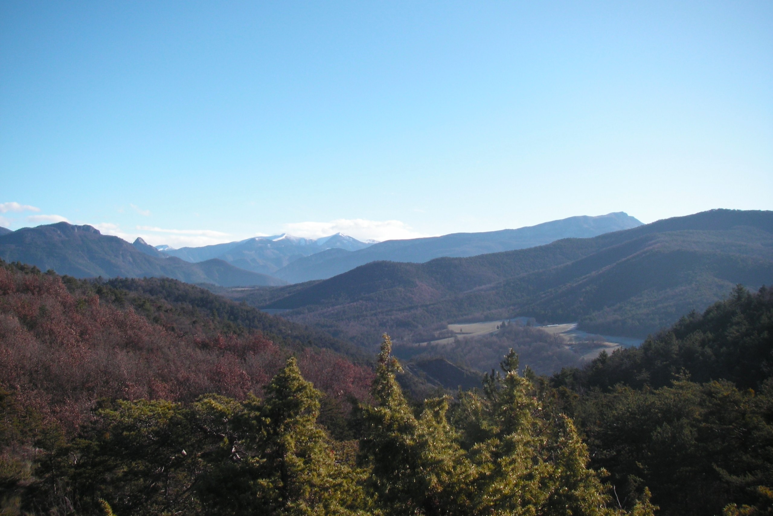 La route devient piste et continue en suivant plus ou moins le torrent puis remonte jusqu’à la départementale qu’on prend à gauche jusqu’au village de Sigoyer (table d’orientation sur la place).