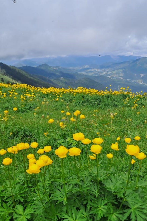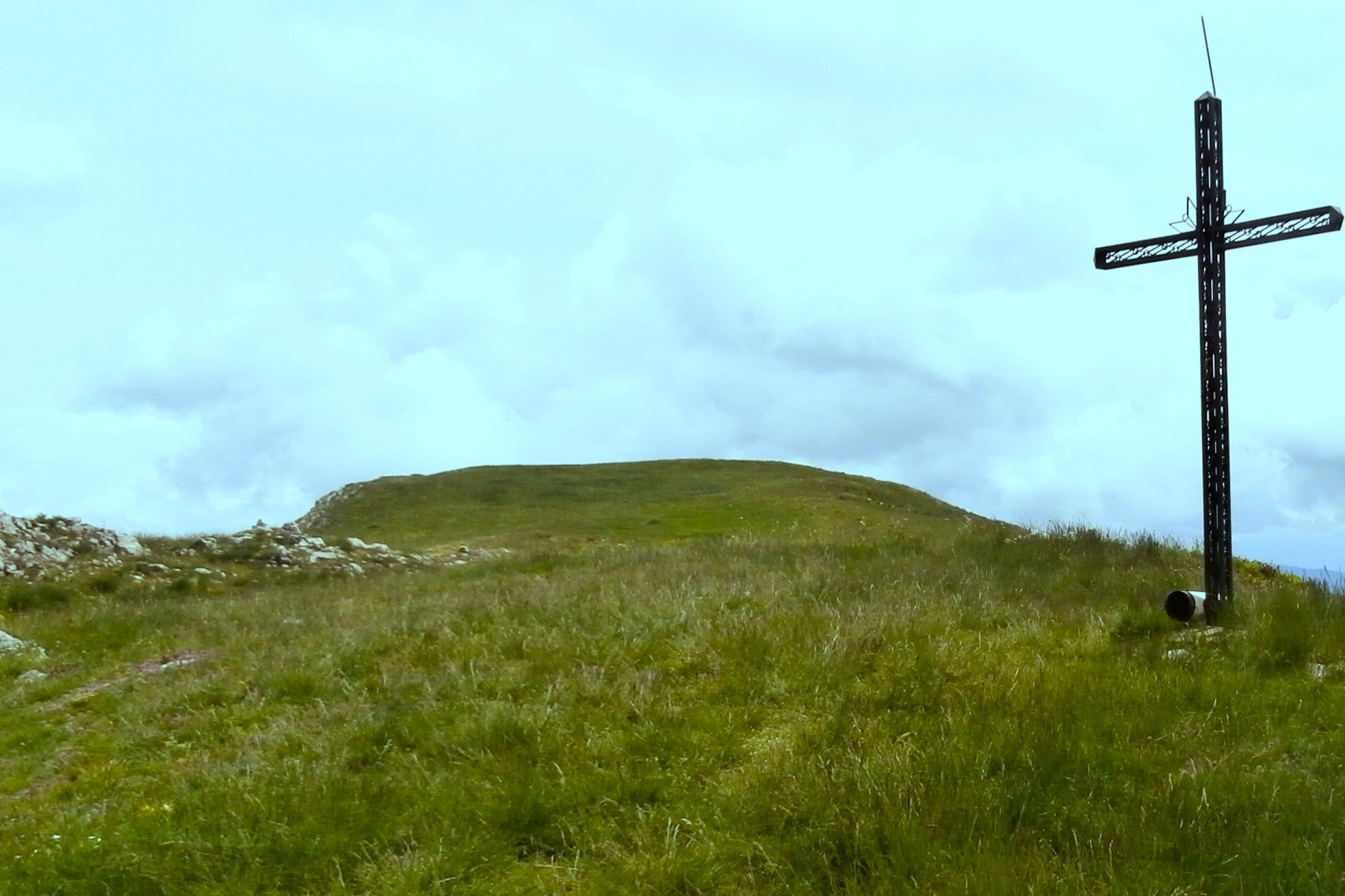 Nous étions peu nombreux ( à cause d’une météo capricieuse ?) pour ce sommet vert et fleuri, d’abord caché dans la brume ! Le panorama à 360° a malheureusement été limité aux plus proches sommets. Nous avons quand même profité du soleil pour une pause pique-nique agréable près de la croix (œuvre de Marcel, érigée par l’association Arc-en-ciel). Lors de la descente, la jambe de Danièle a violemment rencontré une branche de buis… l’occasion d’un petit rappel à tous : il n’est pas inutile d’avoir une trousse à pharmacie dans son fond de sac, même si elle ne sert pratiquement jamais !
