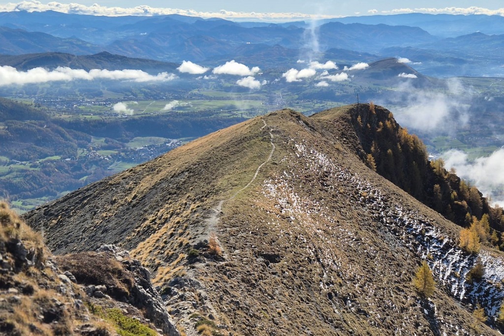 Au col prendre la trace en traversée vers le sud sous le Palastre, puis par quelques lacets parvenir sur la crête et grimper jusqu’à la croix (passage un peu exposé).