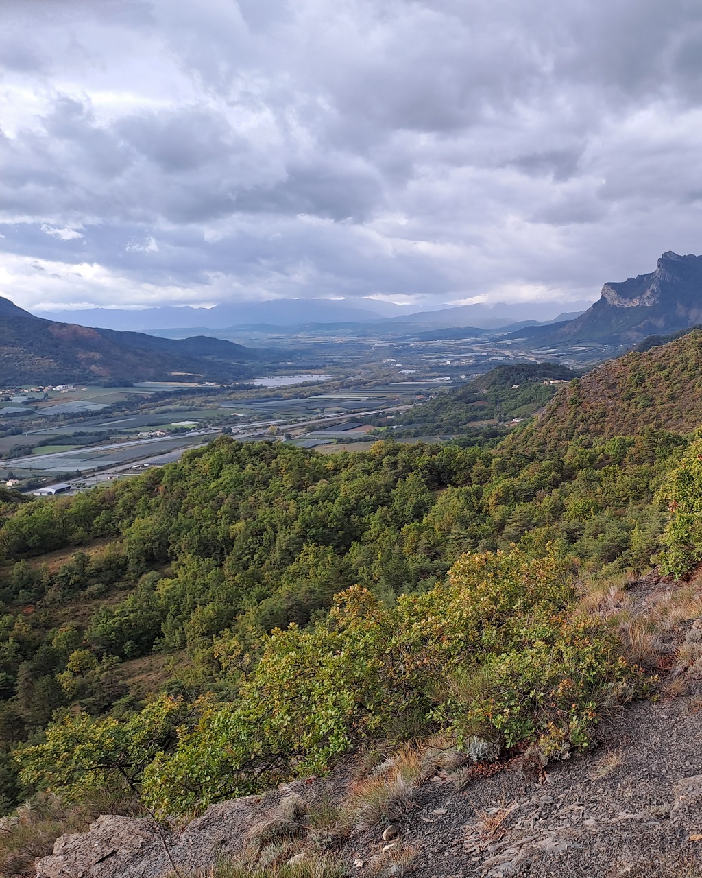 Après le torrent de Rio Chabal, remonter sur plusieurs virages pour rejoindre le sentier vers Saulce-Vieille. Le prendre à gauche pour monter jusqu’au mur ruiné pour découvrir les montagnes environnantes : Peynier, Malaup, Tête de Boursier et le village de La Saulce.