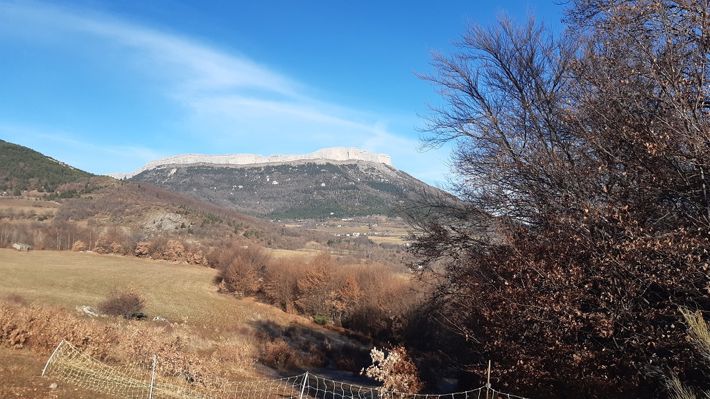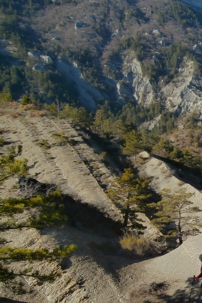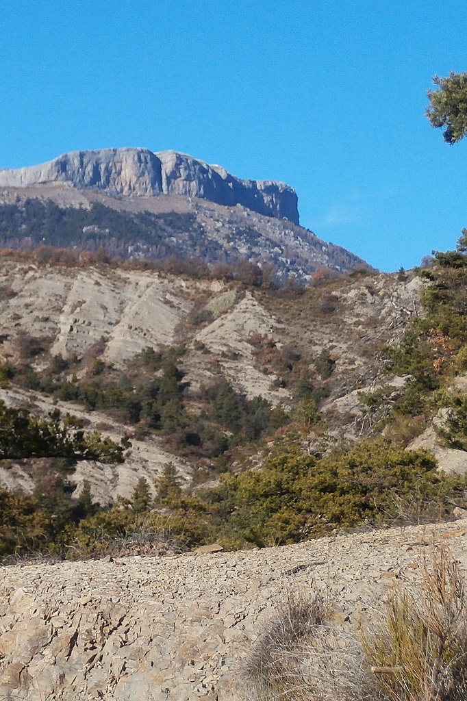 Très belle journée ensoleillée dans le bois de Peyssier et le long de la crête de Somme Longue. Après quelques bonnes grimpettes dans les marnes sur des sentiers en dévers, un peu glissants par endroit et de belles traversées en sous-bois, nous avons atteint la crête et admiré la vue sur Céüse, les crêtes de Rochefort et les sommets enneigés alentour. Nous avons pique-niqué sur une butte en plein soleil. Denis avait apporté une bonne bouteille et Marie-No et Rolande, du vin chaud. Après le repas, nous nous sommes régalés avec diverses friandises et Monique nous a bien fait rire avec quelques blagounettes. De retour au croisement des chemins entre Lardier et Sigoyer, nous avons fait une pause. C’est là, sur le petit replat, avec en toile de fond les falaises de Céüse, qu’une bonne partie du groupe s’est mise à danser le madison et autres danses en ligne, afin de prolonger la bonne humeur générale de cette dernière randonnée de l’année. Nous nous sommes quittés vers 15 h en nous souhaitant de bonnes fêtes et en fixant le prochain rendez-vous au 8 janvier pour la reprise des randos du club.
